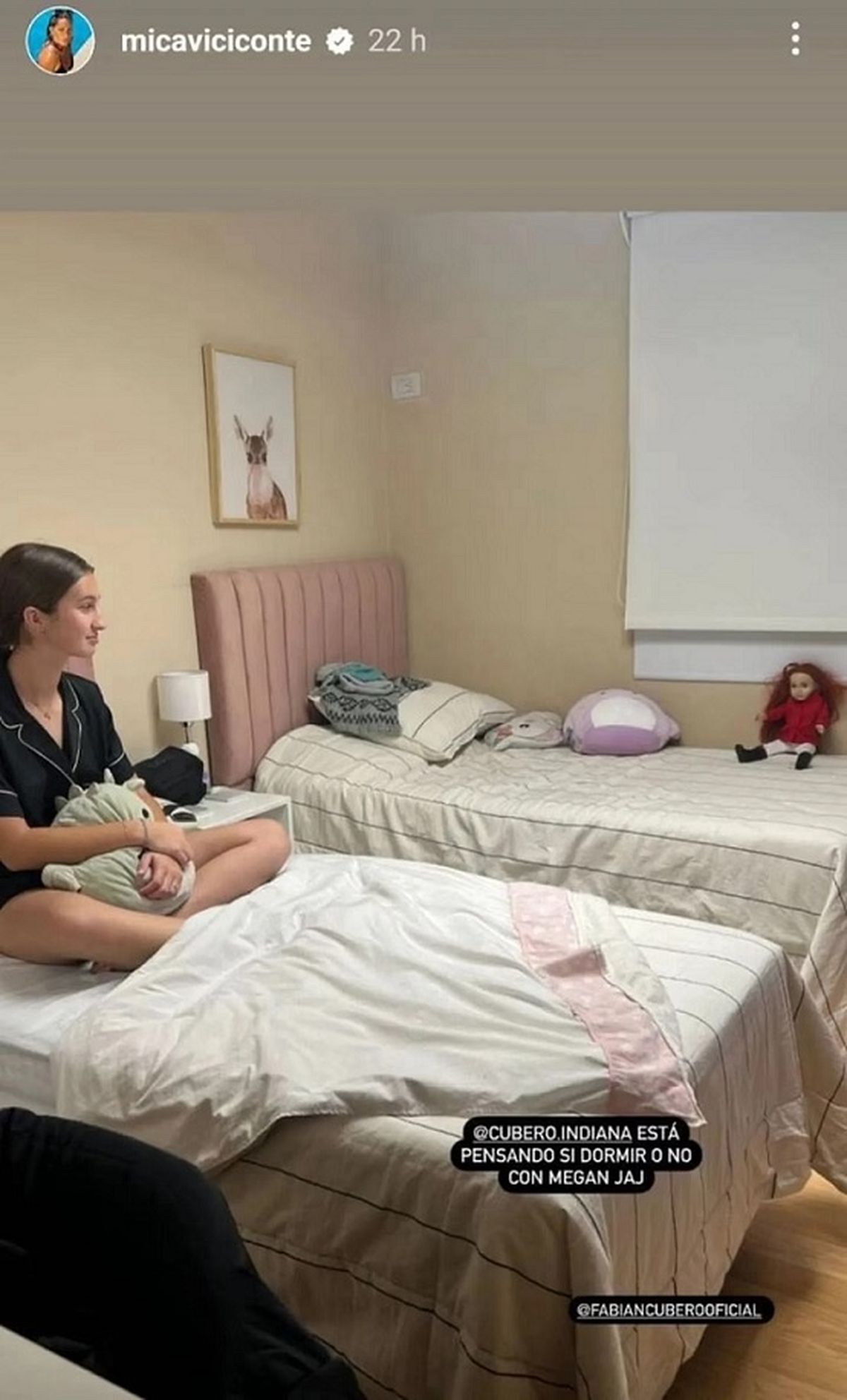 "Indiana está pensando si dormir o no con Megan jaja", expresó Mica en la postal donde mencionó a la adolescente y a Poroto.