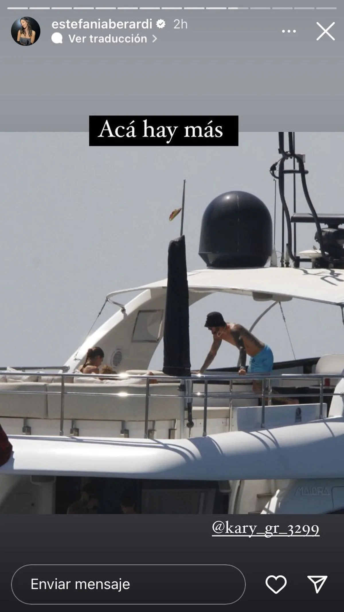 "Los engancharon en un yate. Miren qué tranqui el barco de De Paul. Estaban tomando sol, se sacaban fotos juntos. Quizá después las veamos en sus redes", comentó Estefi.