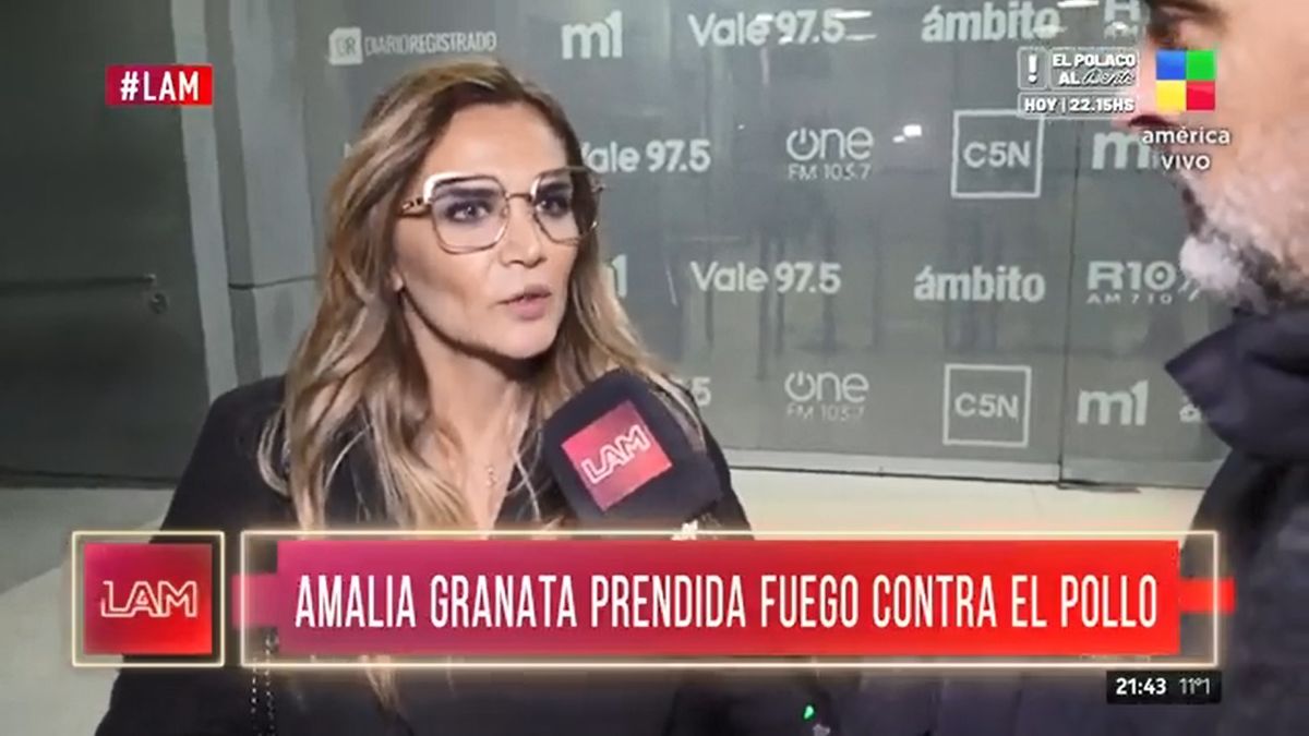 Como no podía de ser otra manera, tras escuchar las palabras del Pollo Álvarez, Amalia Granata volvió a la carga contra él desde una entrevista fuera del piso de LAM. "Cuando mi marido lo llamo al Pollo Álvarez para decirle que deje de llevar a esta señora y que piense en que yo tengo hijos, él se hizo el bolu... y la siguió llevando durante una semana y siguió con el tema", aseguró Amalia.