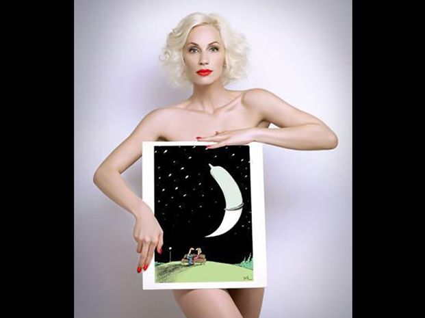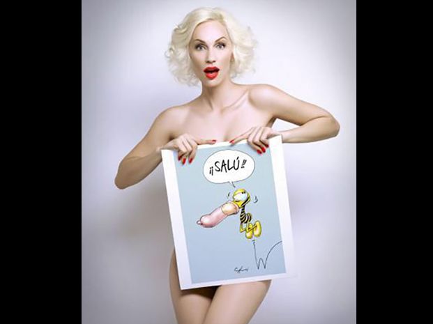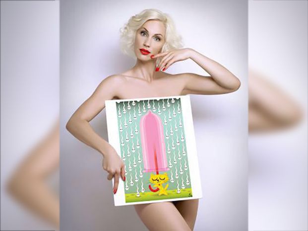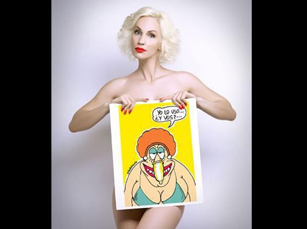 La bellísima rubia, pareja de Cristóbal López, subió varias imágenes a su cuenta de Twitter apoyando la campaña contra el VIH. Se tapó sus partes íntimas con diferentes dibujos.