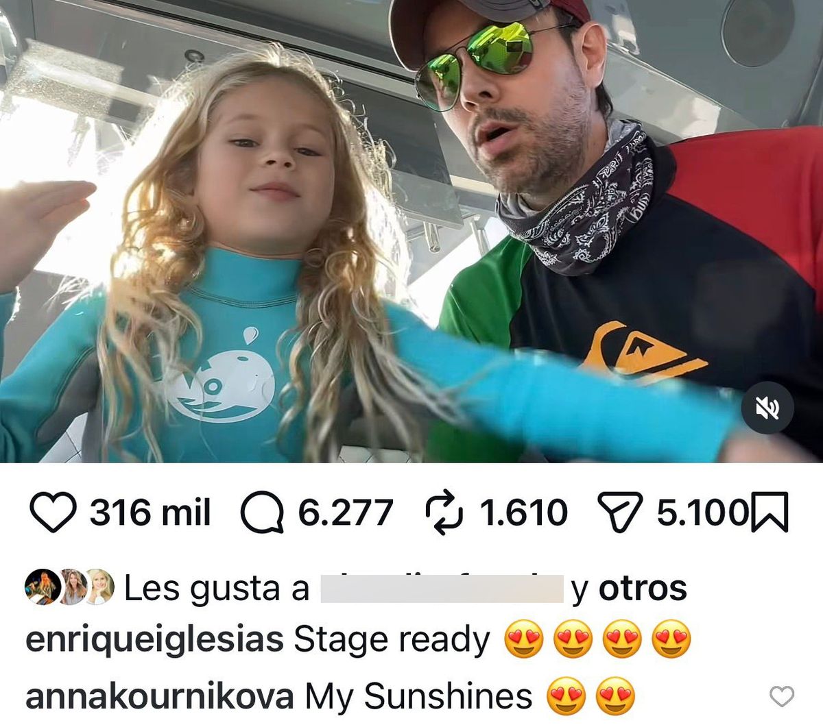 Allí se lo puede ver junto a Mary, una de las hijas del cantante junto a la extenista, donde padre e hija hacen una coreografía mientras cantan una canción, lo que demuestra la enorme conexión que Enrique mantiene con su familia -claramente algo que no ocurre entre él y su padre-. "Stage ready (escenario listo)", fue la escueta descripción del músico que acompañó el posteo, al tiempo que su mujer reaccionó con un comentario a puro amor: "My Sunshines (mis rayos de sol)".