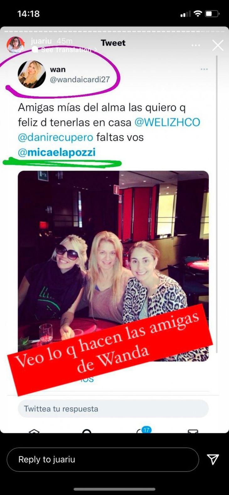 Una amiga de Wanda Nara, Micaela Pozzi, adhirió a un filoso comentario contra la China Suárez. que cosechó fama de desear hombres comprometidos.