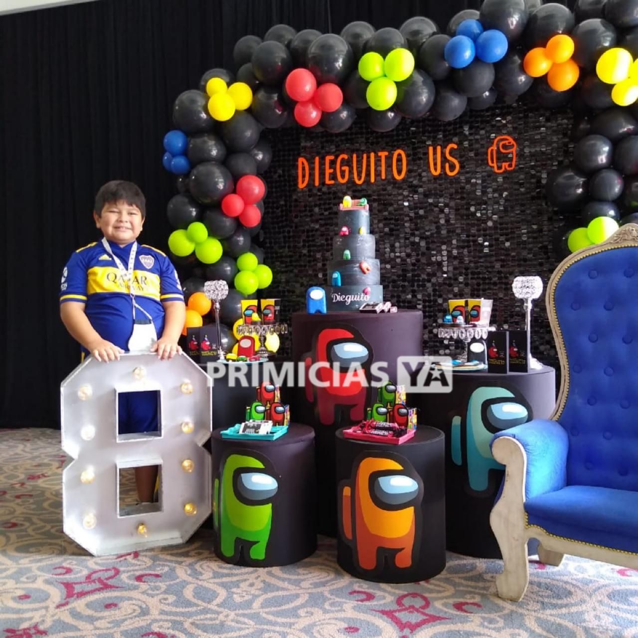 También la celebración, incluida la torta, tuvo como temática principal los colores de Boca, el equipo de sus amores.