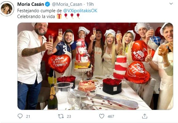 "Festejando el cumple de Vicky, celebrando la vida", le dedicó en Twitter la One a su amiga.