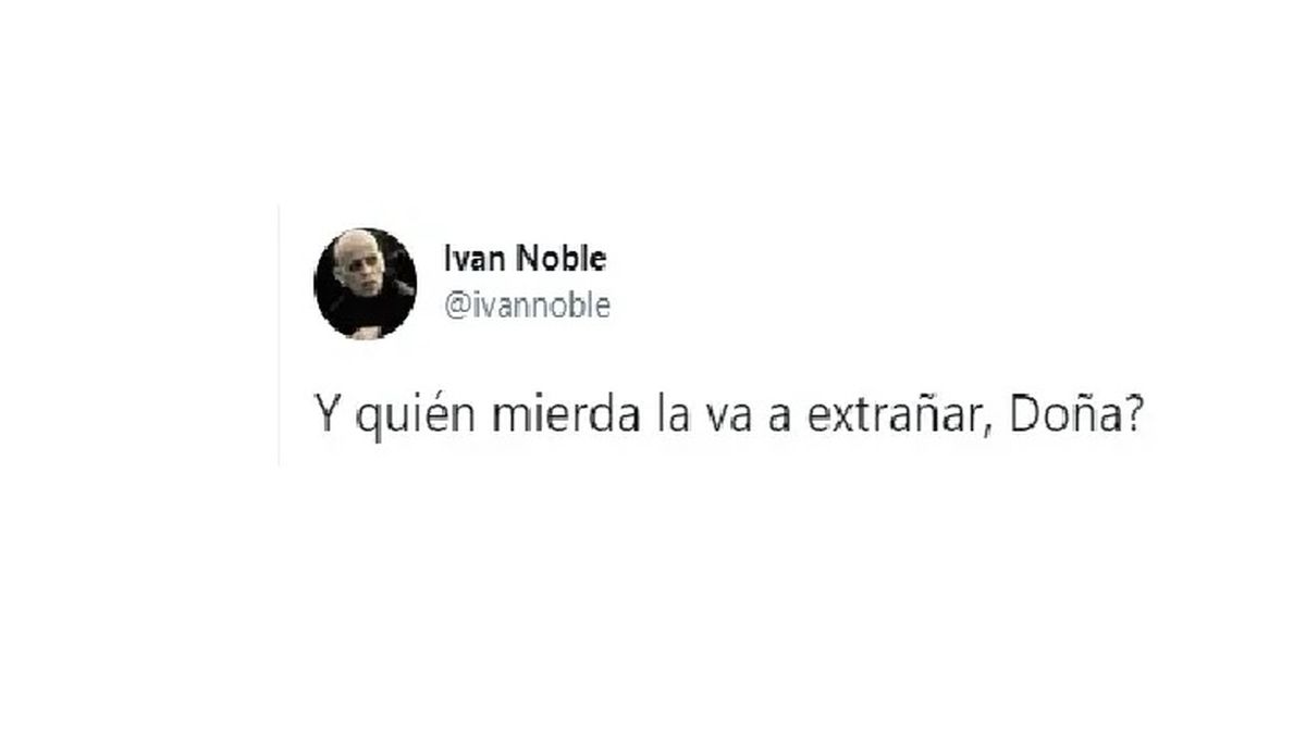 Y luego de escuchar esta crítica a la gestión del presidente, Iván Noble, defensor del actual gobierno, disparó vía Twitter de forma picante contra la conductora: "¿Y quién mier... la va extrañar, Doña?".
