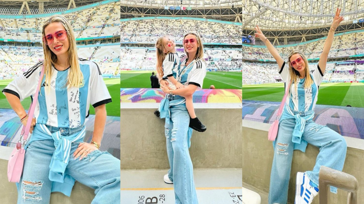 Con un look súper especial, la conductora de La Peña de Morfi (Telefe) posó junto a su hija Chloé, que la acompañó al primer partido, con la cara pintada con la bandera de Argentina y una remera de la Selección.
