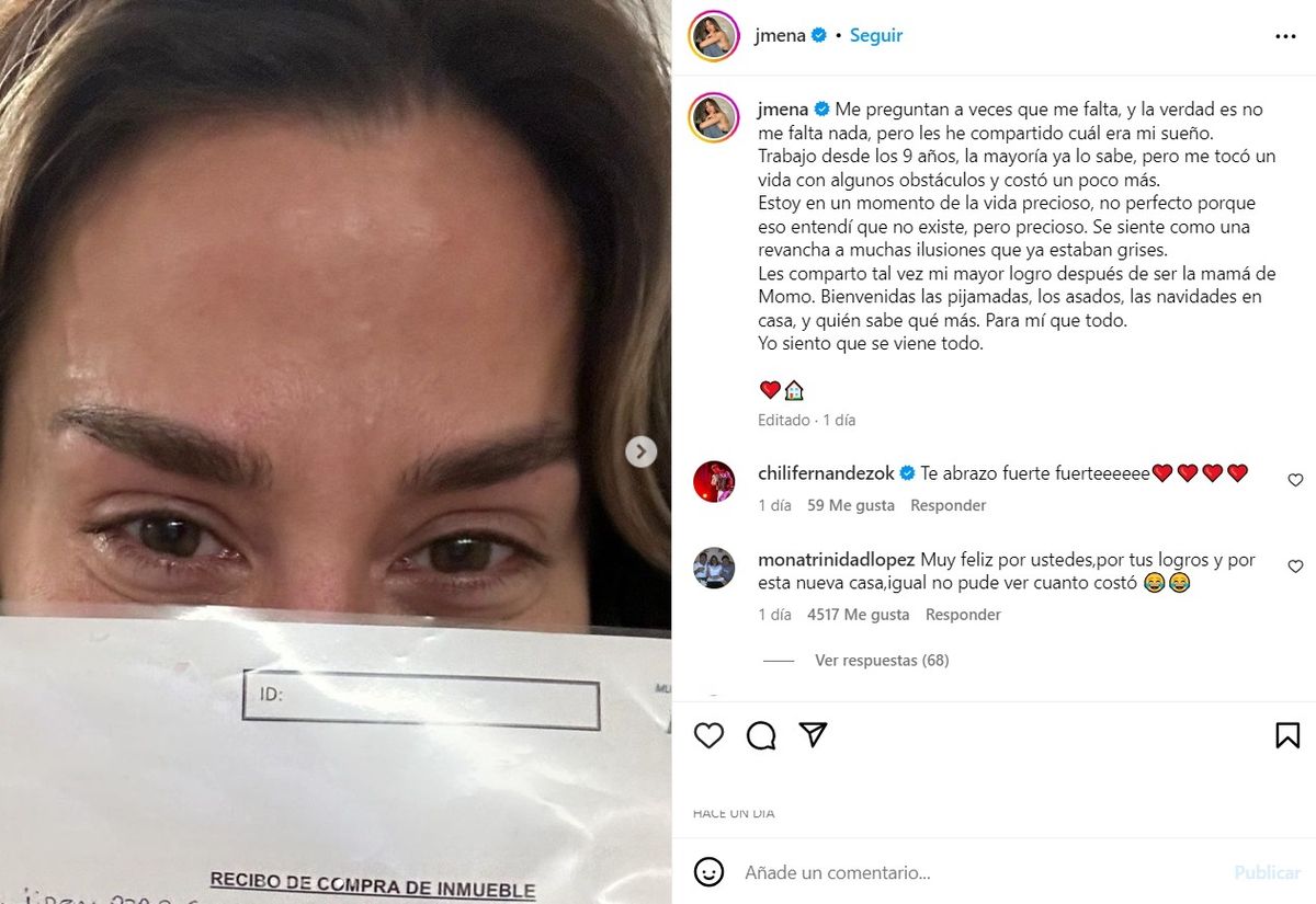 Desde las redes sociales, Jimena compartió su emoción al contar que pudo comprar su casa con mucho esfuerzo después de tantos años de trabajo.