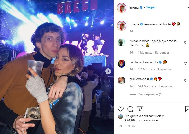 Momo se quedó jugando con Lorenzo y Jimena aprovechó para irse de joda. "Resumen del finde", posteó Barón con imágenes de la noche del sábado.