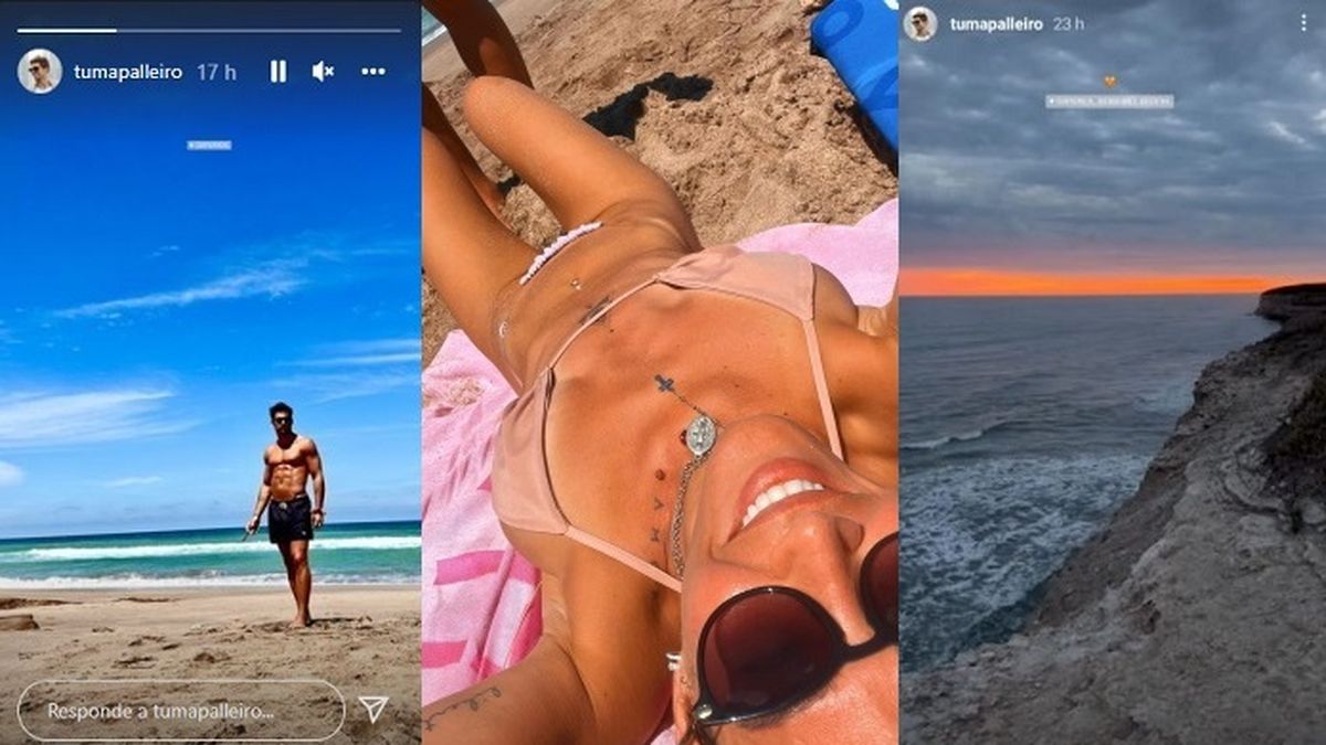 Pero eso no es todo porque la cantante y actriz, además compartió un video junto a varias postales con un popurrí de su estadía, y en la que pícaramente fotografió al galán en cuestión de espaldas caminando por un sendero, así como también en otra se la ve tirada en la arena sobre un toallón playero haciendo una selfie, en la que se llegan a ver los pies de Palleiro.