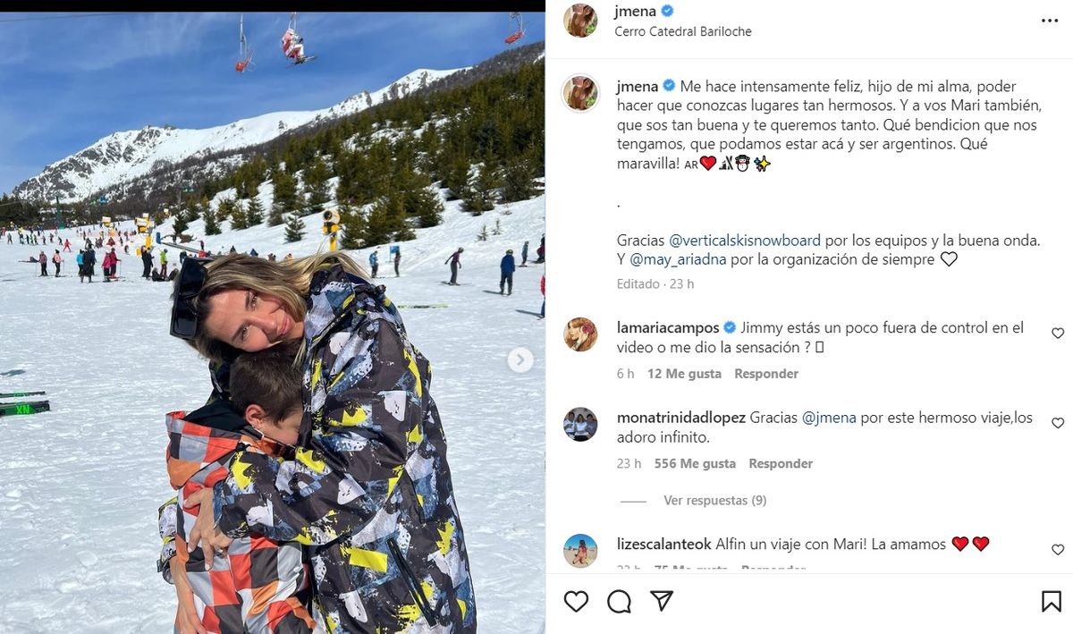 "Me hace intensamente feliz, hijo de mi alma, poder hacer que conozcas lugares tan hermosos. Y a vos Mari también, que sos tan buena y te queremos tanto. Qué bendición que nos tengamos, que podamos estar acá y ser argentinos. Qué maravilla!", publicó con varias imágenes de su estadía en su cuenta de Instagram.