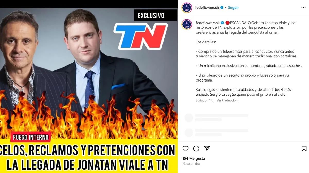 Así las cosas, mientras que Lapegüe negó de plano tal versión ante este portal, ahora fue Jonatan Viale quien, en diálogo exclusivo con PrimiciasYa, coincidió con su compañero de canal y le restó importancia al rumor al preguntarse despreocupado "¿cuál es la fuente de esa info? Twitter, un posteo de Instagram".