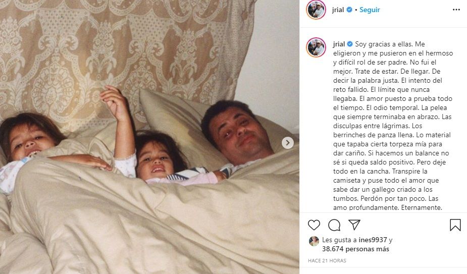 "Perdón por tan poco. Las amo profundamente. Eternamente. Siempre estoy de este lado. Siempre. @rochirial @moreerial", finalizó Jorge.