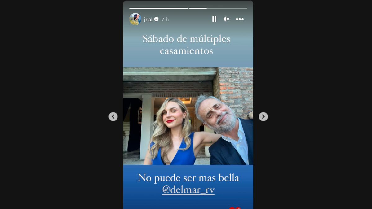 "Sábado de múltiples casamientos", afirmó Rial ya que estuvo invitado a distintos casamientos y añadió sobre su acompañante: "No puede ser más bella @delmar_rv".