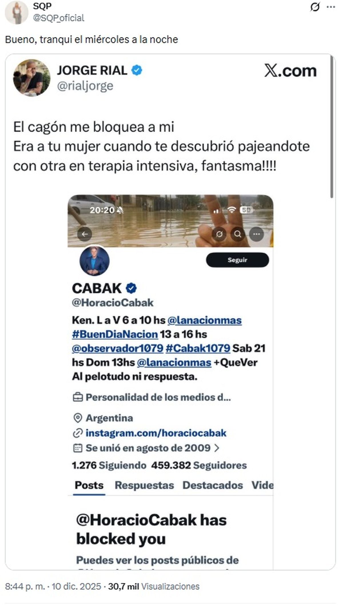 El mundo de las redes sociales suele dejar al descubierto rencillas y broncas entre distintas personas. Esta vez se desató una feroz guerra entre Jorge Rial y Horacio Cabak.