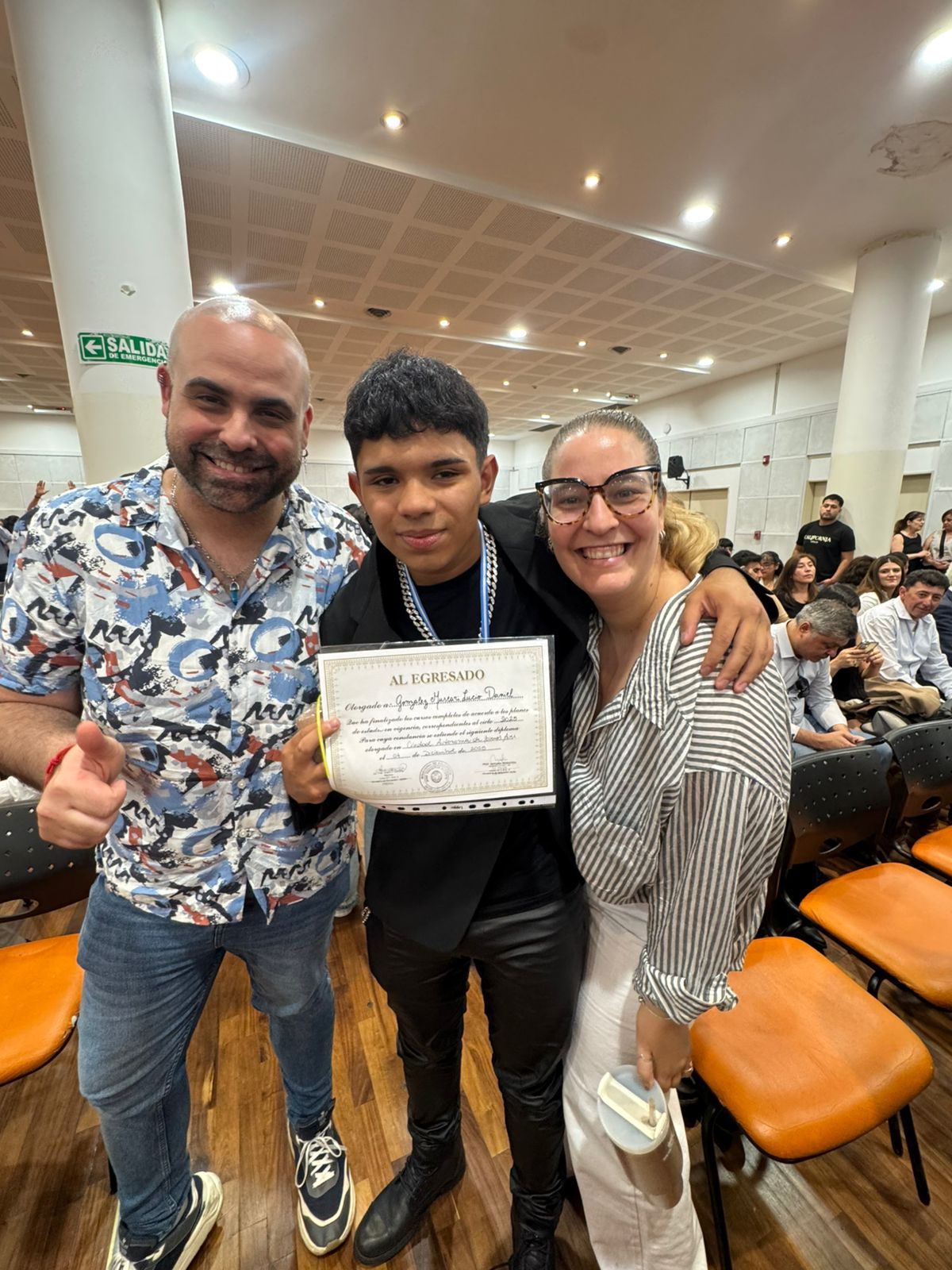 Y dentro de esas nuevas experiencias para el director teatral, hace unos días vivió el egreso escolar del colegio secundario de Lucio. Fue este jueves 4 de diciembre, cuando el joven recibió su diploma en el acto de colación. Muscari, emocionado, siguió la ceremonia desde las primeras filas junto a su mamá, sus tíos Beto y Mabel, así como también junto a los padrinos del joven, los productores teatrales Paola Luttini y Martín Gómez.