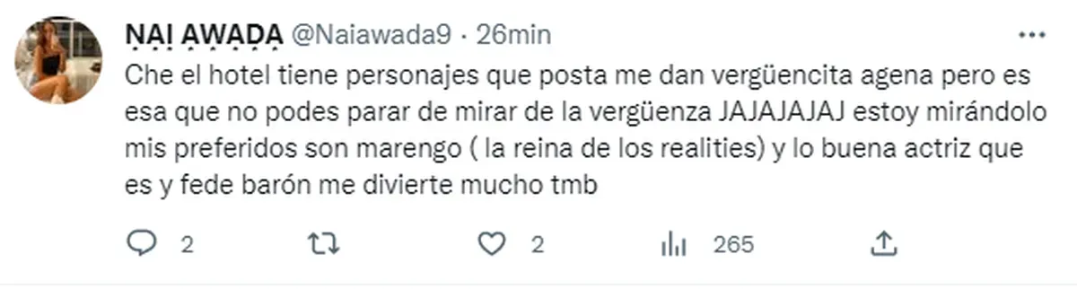 En su cuenta de Twitter, Nai Awada lanzó un duró mensaje sobre los participantes de la segunda temporada de El hotel de los famosos(El Trece).