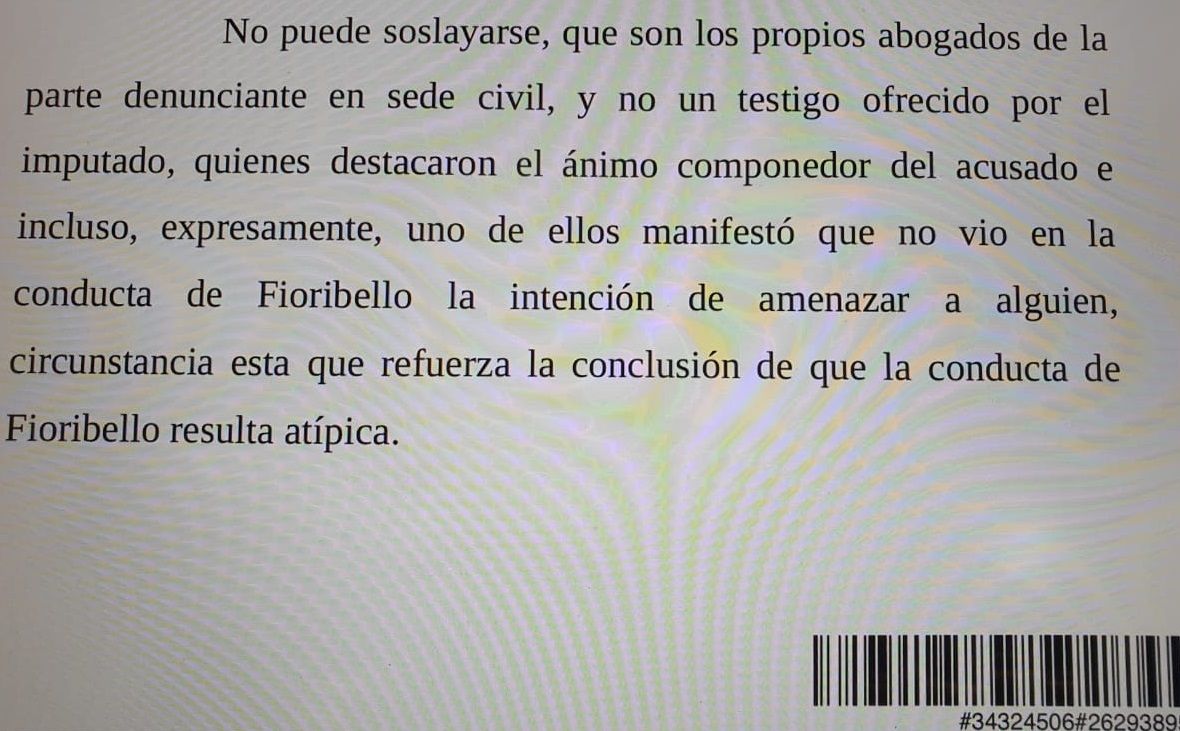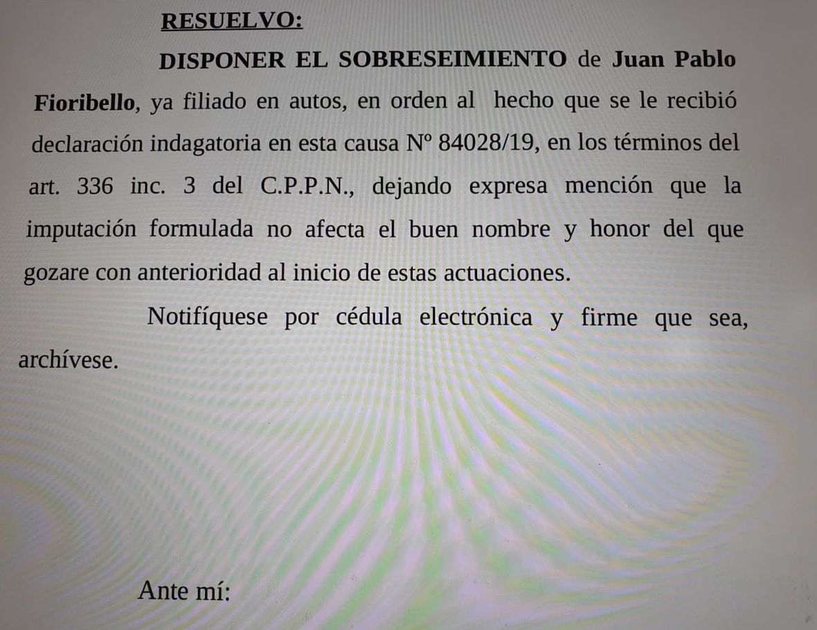 La cámara en lo criminal y correccional pidió que se profundice la investigación y el lunes la Justicia sobreseyó por segunda vez a Fioribello, ya que se constató que no hubo ningún delito.
