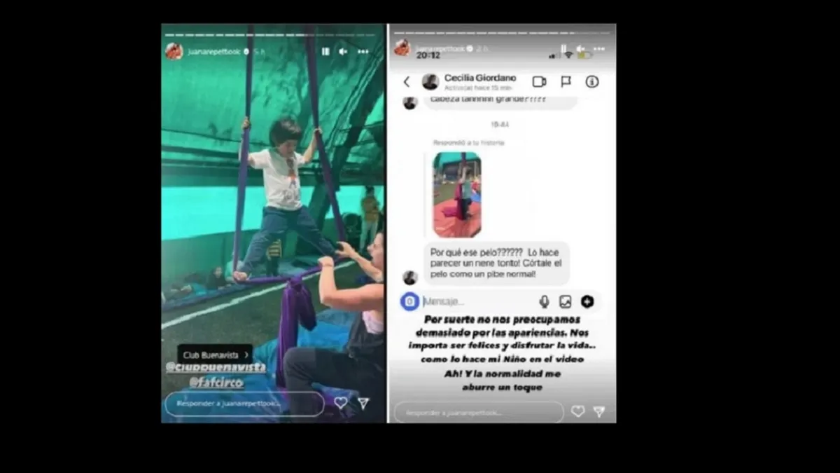 Juana Repetto expuso un mensaje de una seguidora de Instagram que se burlaba del pelo de su hijo Toribio, de seis años. “¿Por qué ese pelo? ¡Lo hace parecer un nene tonto! ¡Cortale el pelo como a un pibe normal!", le dijo la usuaria de la red social a Juana al ver la foto del nene.