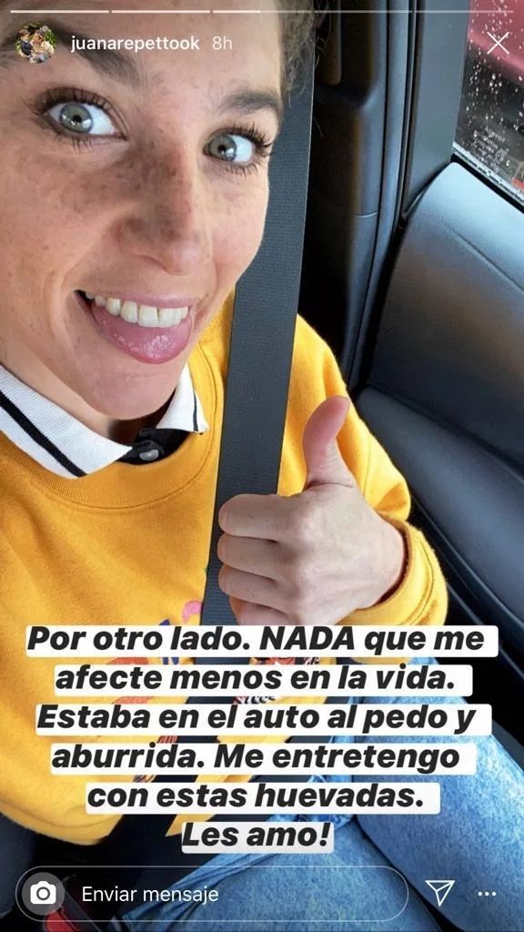 Y luego Juana se sacó una divertida selfie en su auto con el pulgar hacia arriba y le restó importancia a los comentarios.