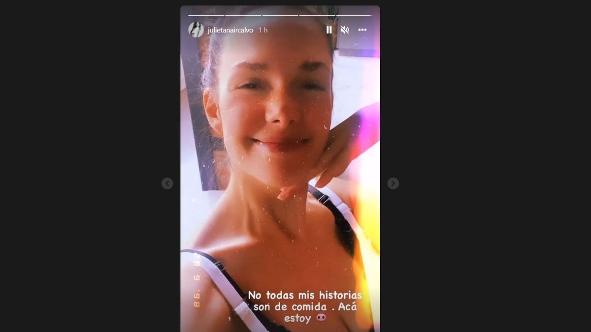 Y en una historia de Instagram, Julieta bromeó: "No todas mis historias son de comida, acá estoy", expresó la actriz, quien hace unos días contó cómo hizo para adelgazar los 10 kilos que subió durante el embarazo.