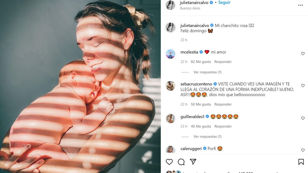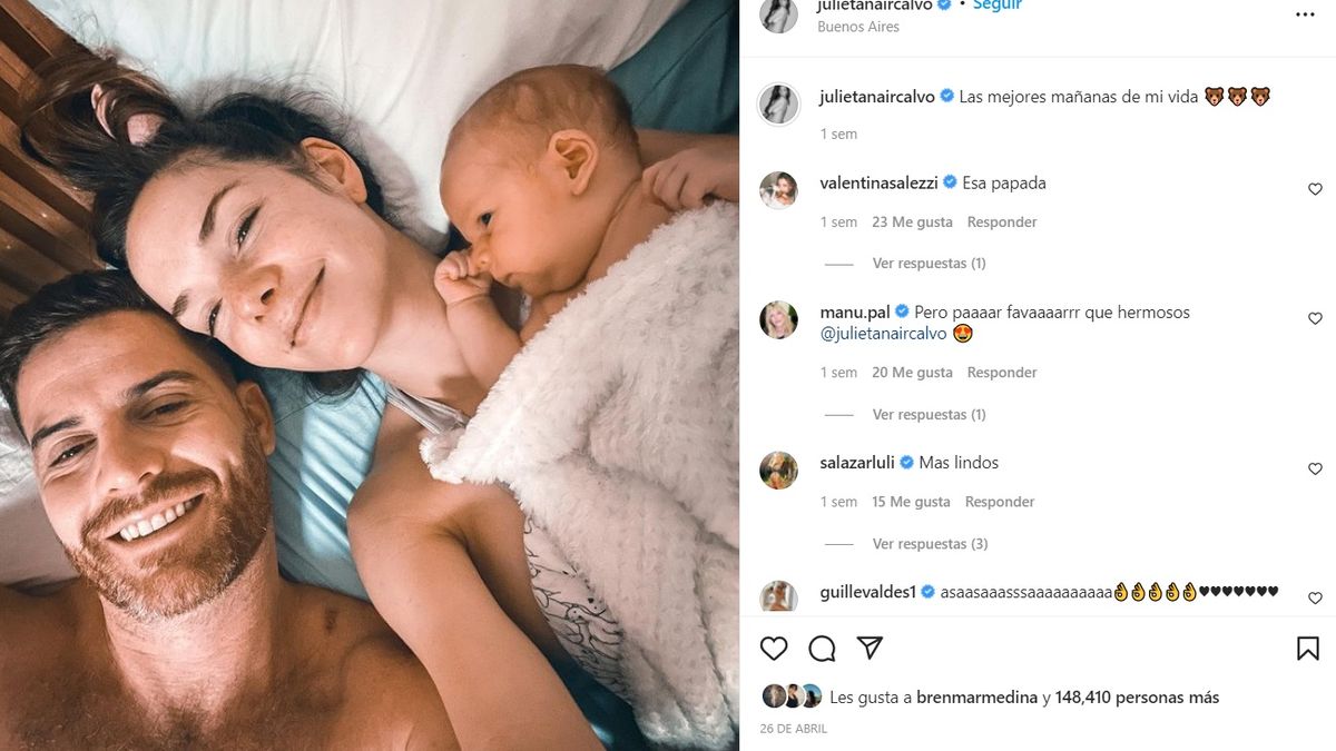 “Ahora sí: somos mucho más que dos. Bienvenido, Valentino”, cerró Julieta Nair Calvo a pura emoción.