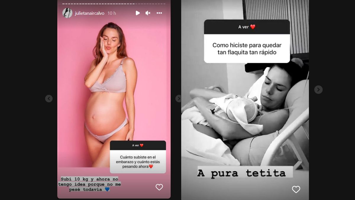 Julieta confesó que con el embarazo engordó unos 10 kilos pero los logró bajar tras el parto, que fue por cesárea. La actriz se animó a contestar preguntas a sus seguidores en las que contó todo.