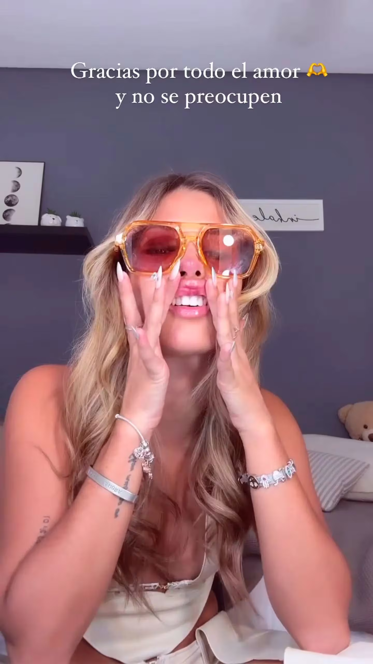 “Es solo aparecer para que se queden tranquis y para agradecer todos los mensajitos que me están mandando. Que tengan una hermosa noche, los amo”.