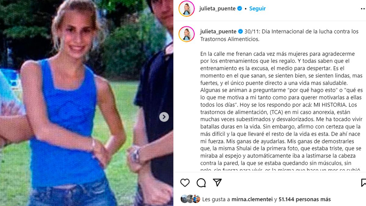 Con motivo de la Día internacional de la lucha contra los Trastornos de Conducta Alimentaria (TCA), Julieta Puente compartió un profundo mensaje sobre su lucha contra la anorexia.