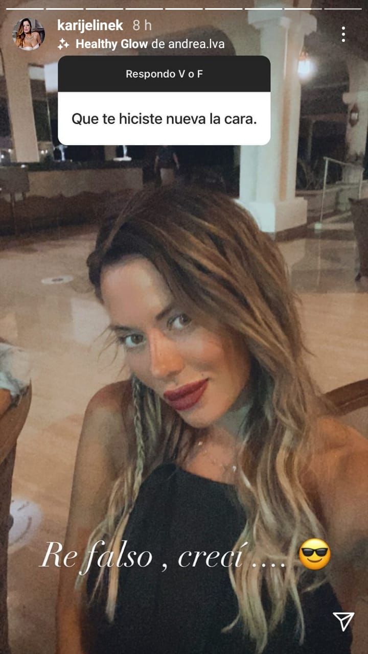 Consultada sobre si se había realizado alguna cirugía en su rostro, Karina contestó: "Re falso, crecí".