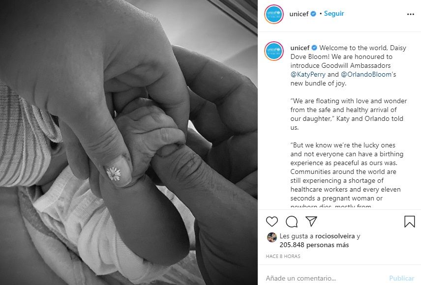 La feliz noticia fue confirmada desde la cuenta de Unicef. "¡Bienvenida al mundo, Daisy Dove Bloom! Nos sentimos honrados de presentarles a los Embajadores de Buena Voluntad @KatyPerry y el nuevo pedazo de alegría de @OrlandoBloom", se informó.