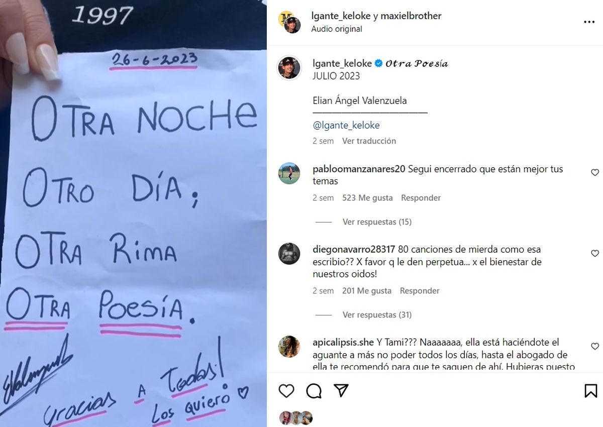 La compleja situación que atraviesa L-Gante, quien continúa detenido en la DDI de Quilmes mientras aguarda que le otorguen la libertad, a causa del episodio que protagonizó a fines de mayo con un vecino que lo denunció por privación ilegítima de la libertad hizo que Tamara Báez dejase de lado las diferencias con el artista urbano.