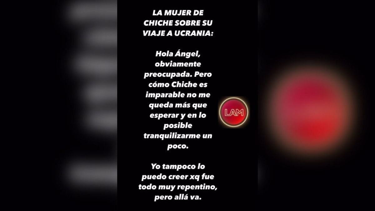 "Hola, Ángel. Obviamente estoy preocupada. Pero como Chiche es imparable no me queda más que esperar y en lo posible tranquilizarme un poco. Yo tampoco lo puedo creer porque fue todo muy repentino, pero allá va", le dijo la esposa del periodista al conductor de LAM.