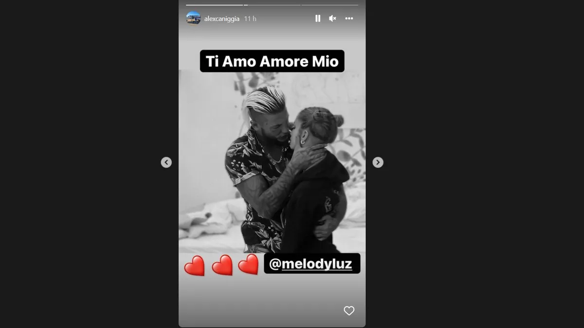 En este panorama, desde las redes sociales Alex Caniggia le declaró su amor públicamente a Melody Luz con dos historias en su cuenta de Instagram.