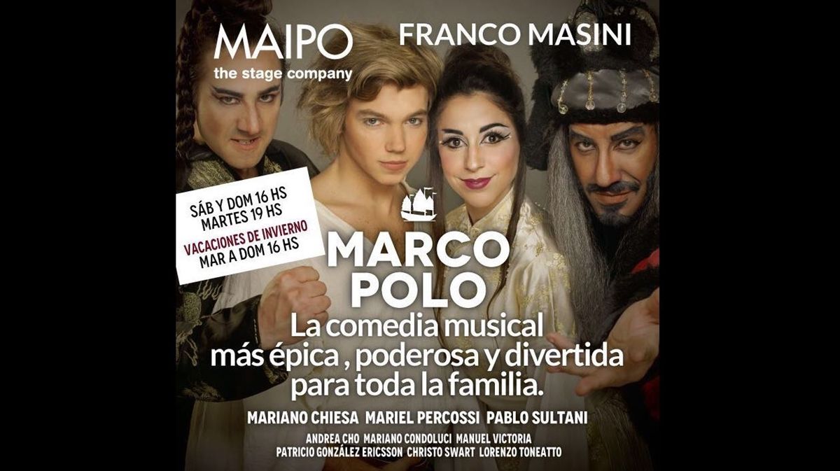 En medio de su romance con Cande Tinelli, Franco Masini ya está listo para debutar este sábado con Marco Polo, el musical con libro y letras de Alice Penn, música original de Javier González Zapiola, coreografía de Alejandra Rappazzini, dirección general de Carla Calabrese y con un gran elenco, en el Teatro Maipo.