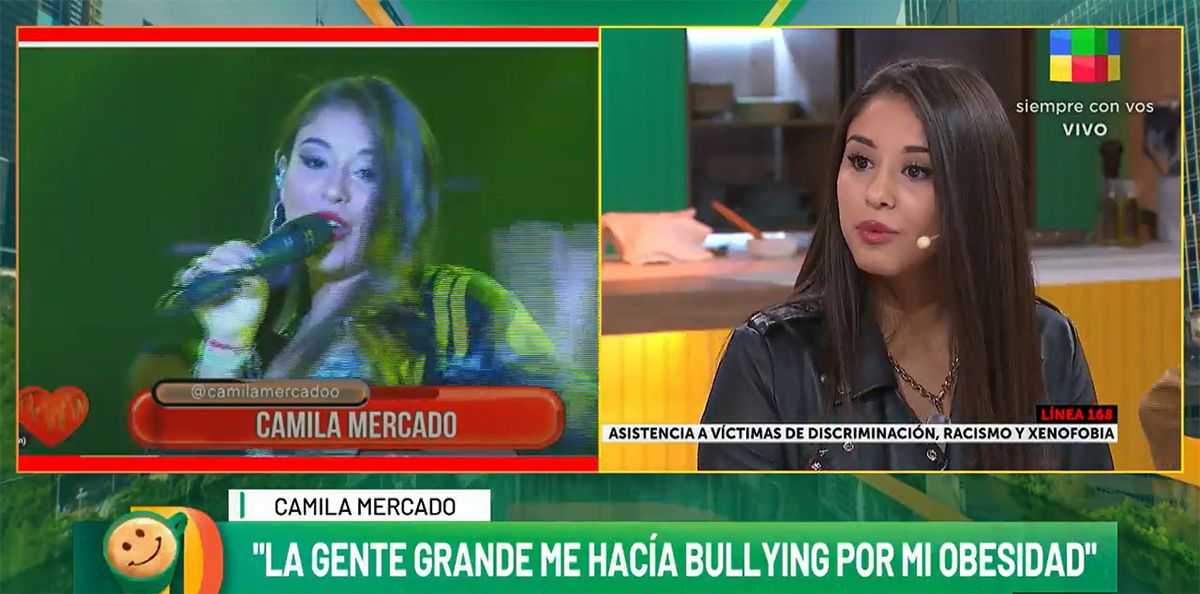 La conductora le preguntó a la joven cantante cómo fue vivir ese momento de su vida en el que la acosaban. "Entré en depresión. Tenía problemas de obsesidad", contó Mercado. "Tuve bullying de compañeros del colegio, y recibí comentarios de gente adulta, eso hoy todavía no lo puedo entender", detalló.