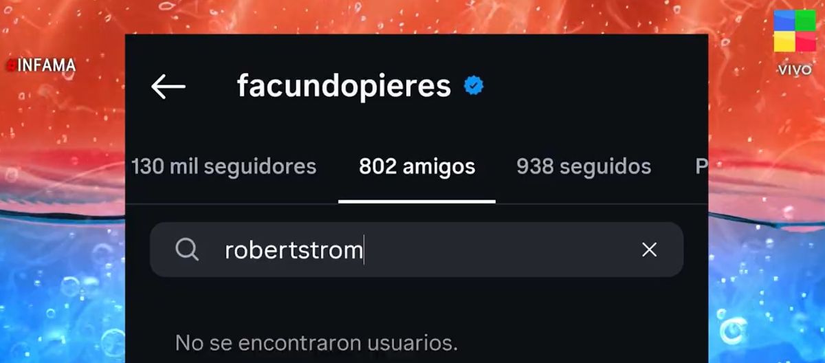 Y pasó en limpio sobre esta acción virtual del polista en medio de los rumores de un nuevo acercamiento con Zaira Nara: "Pieres dejó de seguir a Strom que era su amigo y jugaban juntos al polo. Strom sigue a Pieres y Pieres lo dejó de seguir a él. Los conocen a todos porque la hermana de Robert está casada con el hijo de una de las Trillizas de Oro".