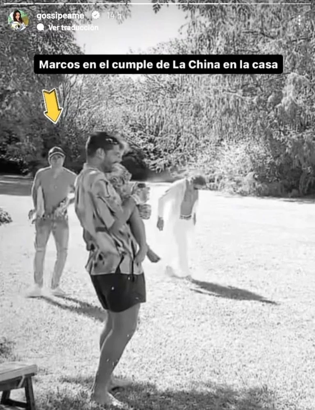 Fue Pochi de la cuenta de Instagram Gossipeame quien publicó la foto del festejo íntimo que organizó la actriz y donde se lo ve también a Marcos sin remera y con gorra en el jardín.