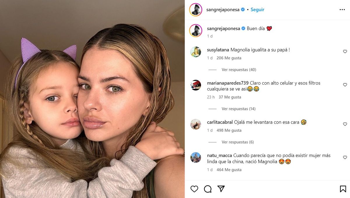 La actriz y cantante compartió una selfie sin maquillaje junto a Magnolia e impactó por su inmenso parecido: "Buen día", expresó con la tierna postal que en unas horas superó los 400 mil likes.