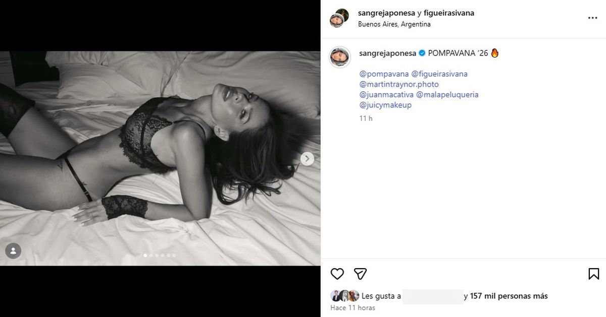 El regreso de la actriz se dio de la mano de Ivana Figueiras, quien la sumó como figura de su marca de lencería. En sus redes, la China Suárez compartió un carrusel de imágenes donde mostró los distintos looks de la producción. “Pompavana ’26”, escribió junto a las fotos, agradeciendo y etiquetando a la empresaria y al equipo creativo.