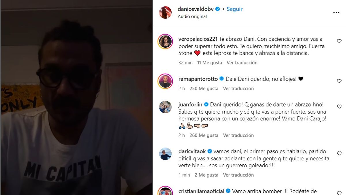 "Como saben en el pasado fui un futbolista de élite, era una persona completamente diferente, llena de seguridad, de confianza... Y hoy soy una persona a la cual, no reconozco, y me está costando mucho salir de esto. Quiero decir, porque por ahí hay algunos de ustedes han pasado por lo mismo, tendrán familiares que han pasado o que están pasando por lo mismo que se animen a hablar con su familia. Con parte de mi familia hablé de estas cosas, otra parte de mi familia se va a enterar después de ver este vídeo. Me cuesta mucho hablar las cosas, me cuesta mucho abrirme", reconoció Daniel Osvaldo.