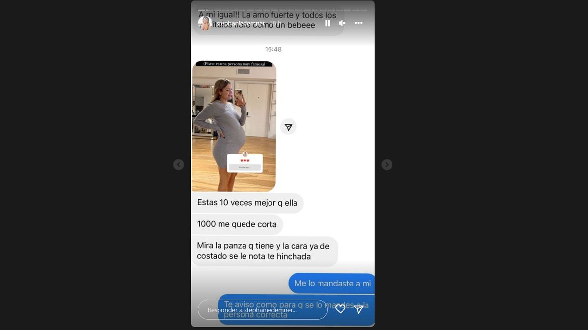 Al leer este fuerte comentario en las redes, Stephanie Demner le contestó de forma contundente: “Me lo mandaste a mí. Te aviso como para que se lo mandes a la persona correcta”.