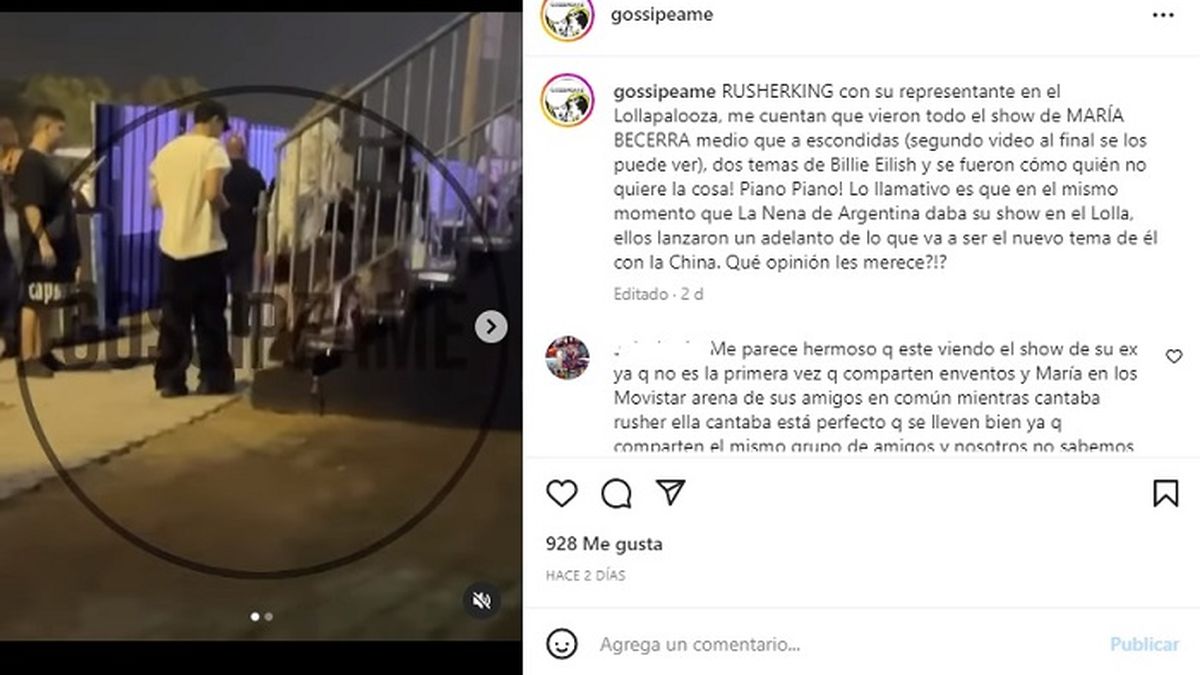 “Se ve que él no quería exponerse a que se supiera o que se viera que estaba viendo el show de María, estuvo en el vip por momentos pero subía y bajaba. Yo creo que María no quedó con buena onda con Rusherking porque él la habría engañado bastante, no por la China en sí. Creo que va por ahí, incluso estaba el novio de Becerra. No quisieron levantar polvo, se ve que disfruta de ver a su ex porque lo vio todo el recital”, concluyó el detalle de la llamativa actitud del cantante.