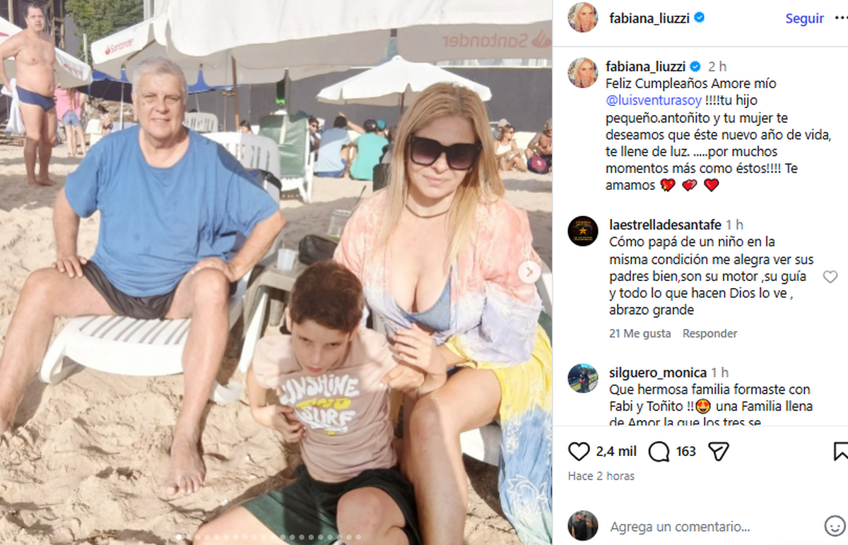 Fabiana Liuzzi, le dedicó un tierno mensaje a su pareja, Luis Ventura por su cumpleaños número 70, y compartió una serie de imágenes con Antoñito, el hijo de la pareja.