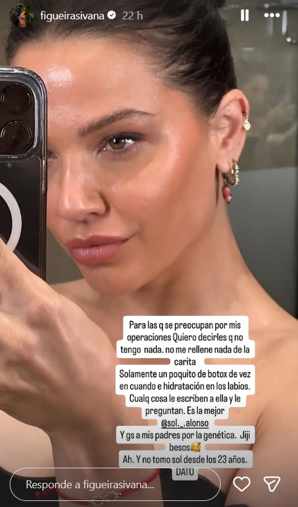 Ivana Figueiras recurrió también a las redes sociales para responder a varios comentarios sobre su físico y dejó en claro que no tiene realizadas intervenciones estéticas.