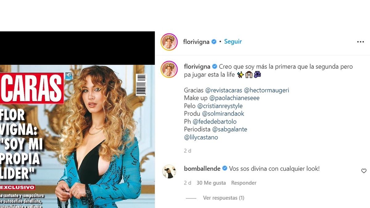 En medio del gran momento que pasa en su carrera artística y su consolidado romance con Luciano Castro, a quien hace poco "escrachó", Flor Vigna compartió la tapa de una revista que la tuvo como protagonista.