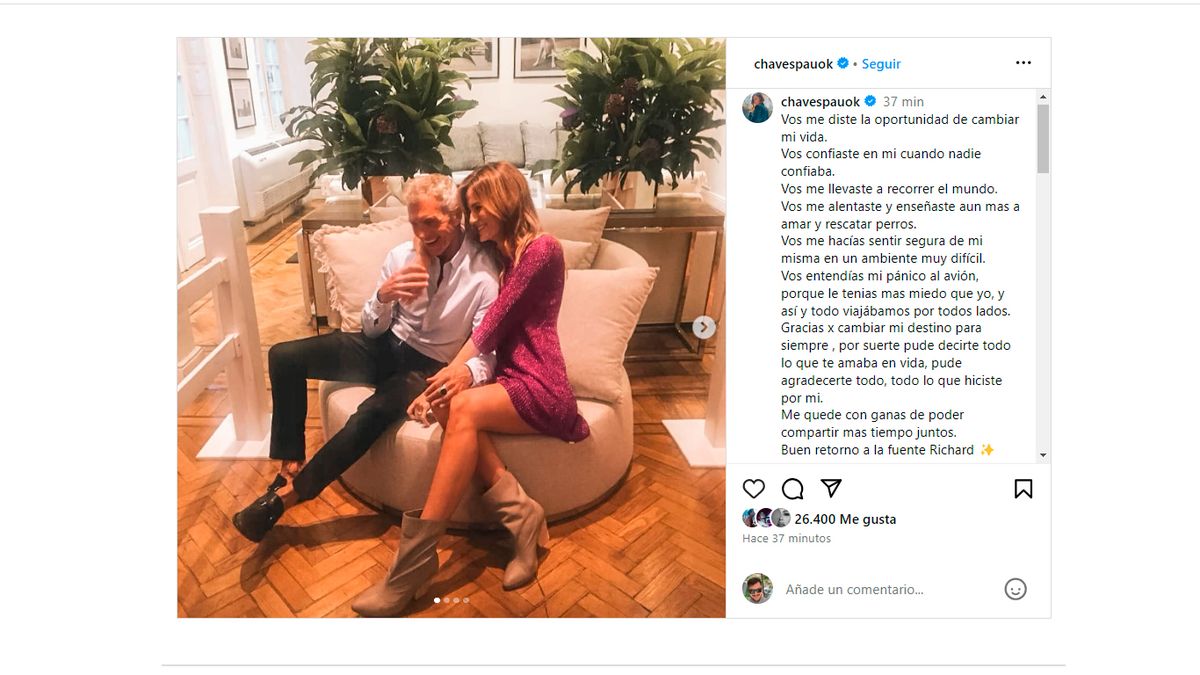 En sus cuenta de Instagram, la modelo y conductora Paula Chaves compartió un profundo mensaje un mensaje para despedir a Piñeiro, que fue su gran mentor tras haberla visto en el reality Súper-M, donde surgió la pareja de Pedro Alfonso.