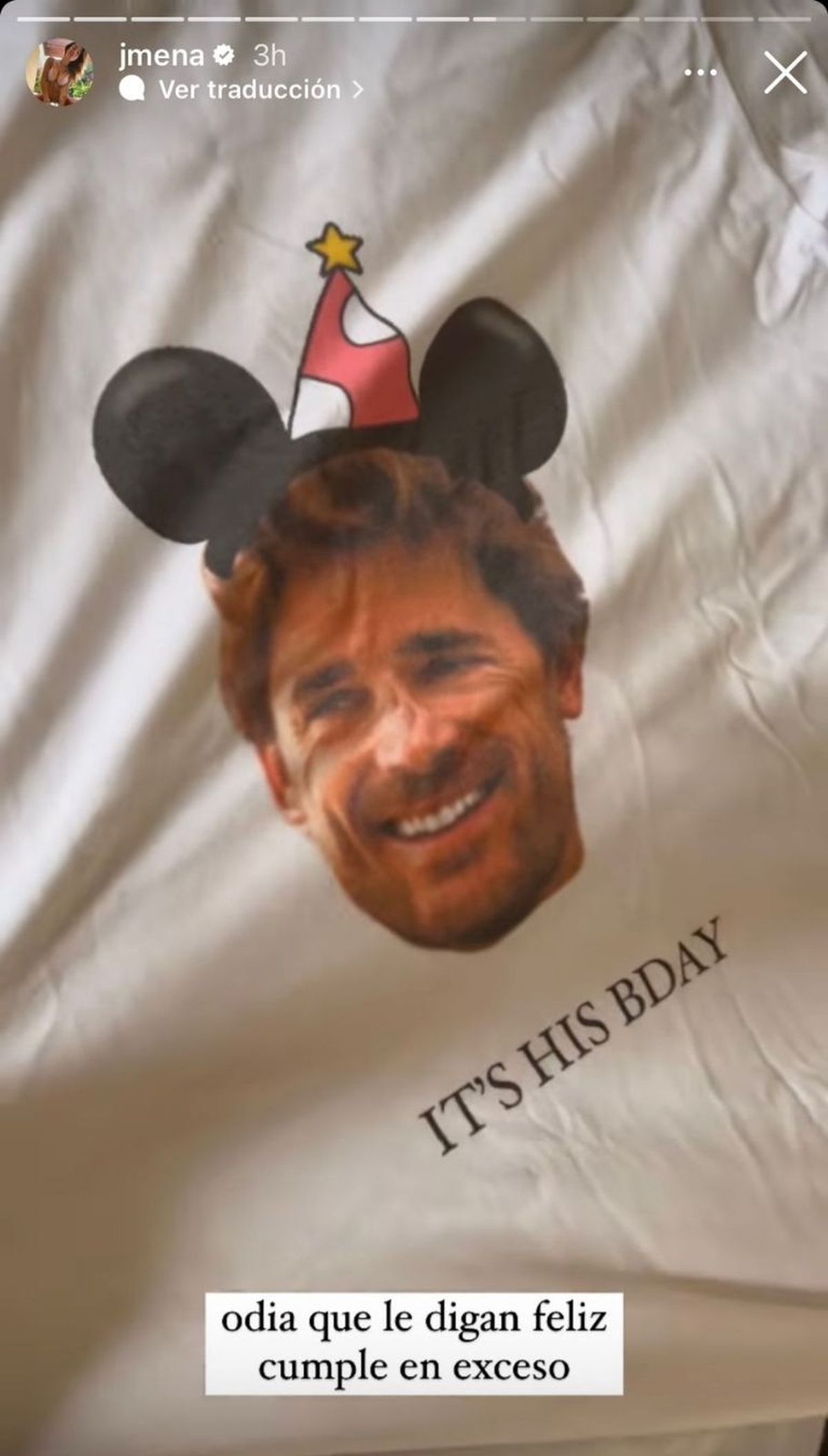 A través de sus historias de Instagram, la ex de Daniel Osvaldo le contó a sus casi seis millones de seguidores de que se trataba el regalo: "Él odia su cumpleaños, como que no le gusta que le digan ‘feliz cumple’ mucho y eso. Así que le mandé a hacer esto", contó Barón mientras mostraba a cámara las remeras que hizo estampar con la cara de Matías y la frase "It's his birthday" (es su cumpleaños), con una divertida foto del ex rugbier.