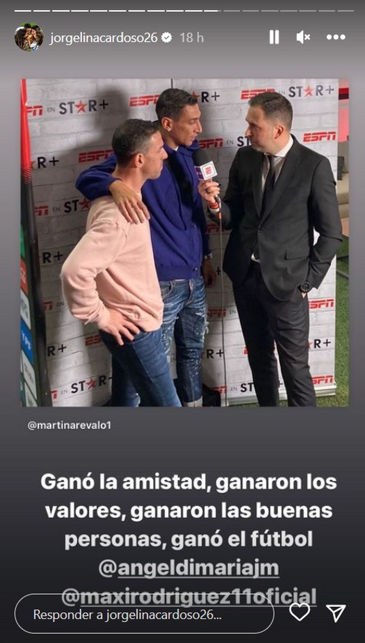 El futbolista, gran amigo de Maxi, agradeció el cariño y respondió con aplausos desde la cancha. Impecable todo.