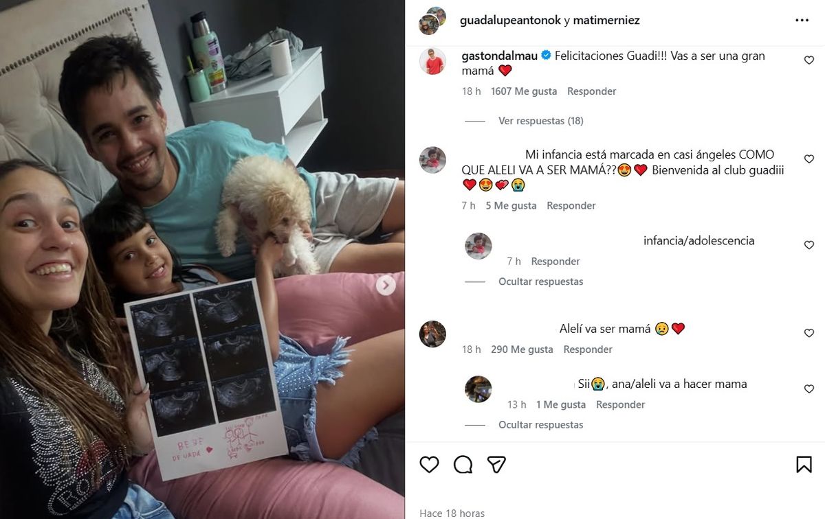 Y otro ex compañero en Casi Ángeles, Gastón Dalmau, también reflejó: "Felicitaciones Guadi! Vas a ser una gran mamá".