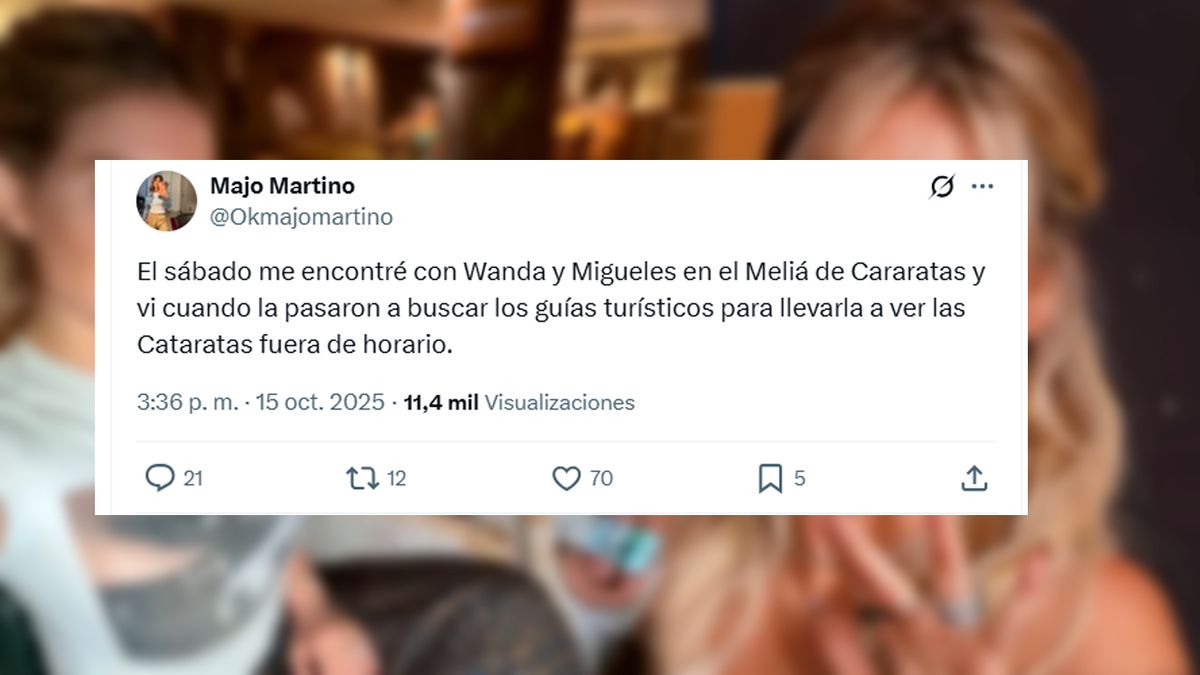 "El sábado me encontré con Wanda y Migueles en el Meliá de Cararatas y vi cuando la pasaron a buscar los guías turísticos para llevarla a ver las Cataratas fuera de horario", precisó la panelista de Sálvese quien pueda.